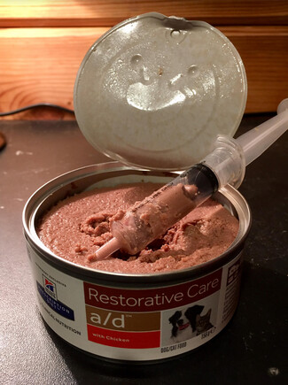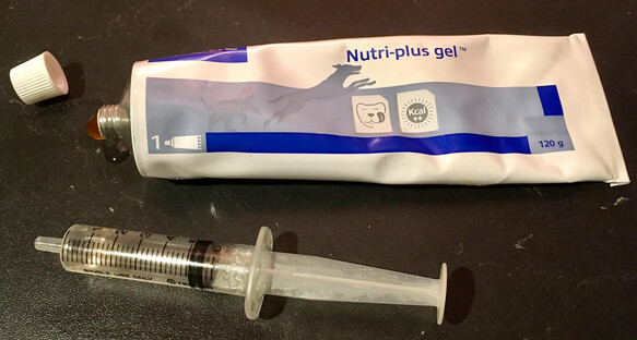 gaver le chat (il doit manger coûte que coûte ; si vous avez de la nourriture plus riche en glucides que son habituelle, utilisez-là – ou bien Nutri-plus gel)