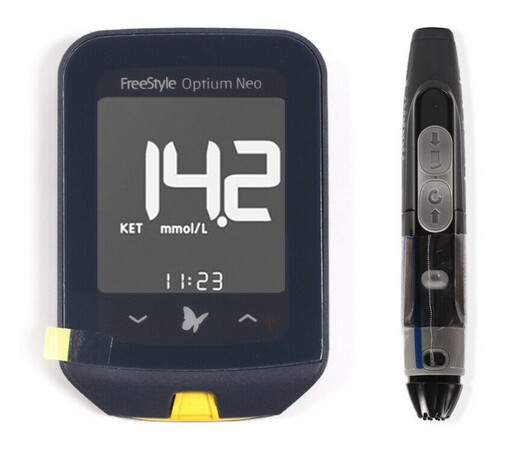 Dans le groupe nous utilisons deux types de glucomètres capables de mesurer également la cétonémie : le FreeStyle Optium Neo et le lecteur FreeStyle Libre.