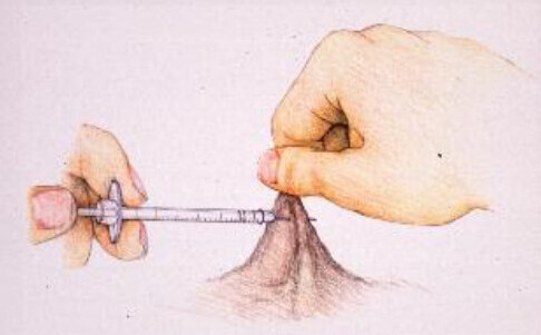 Injection non correcte (l’aiguille traverse la peau de l’autre côté) :