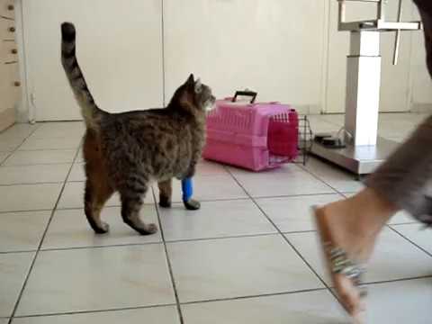 Chat diabétique en rémission de sa plantigradie dès la 1ère semaine du traitement :