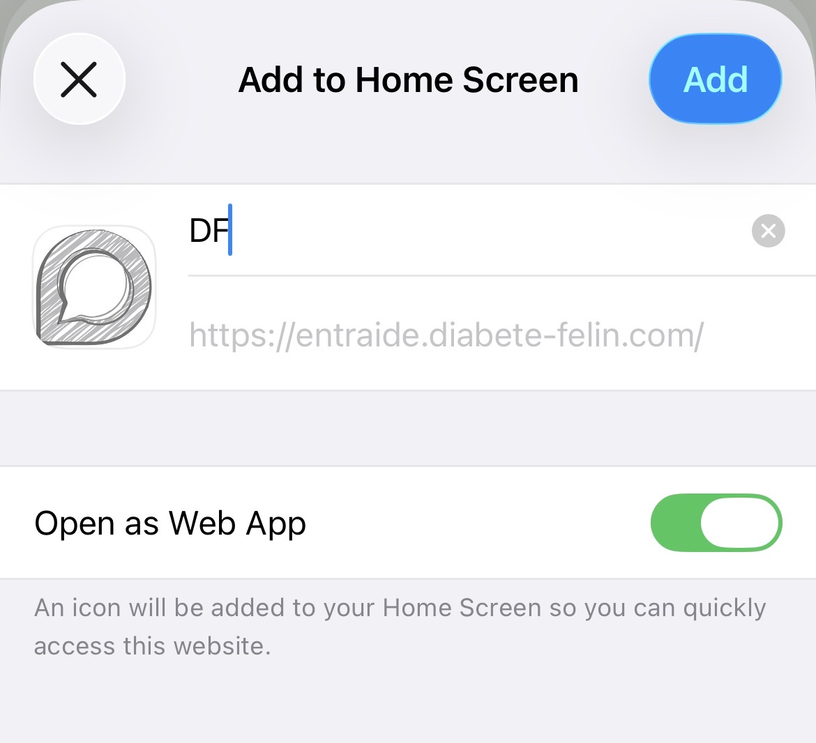 Note bien l’adresse et peut-être enregistre-la dans tes favoris: https://entraide.diabete-felin.com – et si tu as un téléphone mobile, tu peux l’ajouter à ton écran d’accueil comme application, pour avoir ta propre “app DF”! (Il existe aussi une app Discourse officielle à partir de laquelle tu peux te connecter à DF et toute autre communauté Discourse dont tu fais partie.)