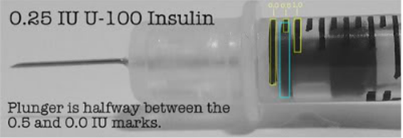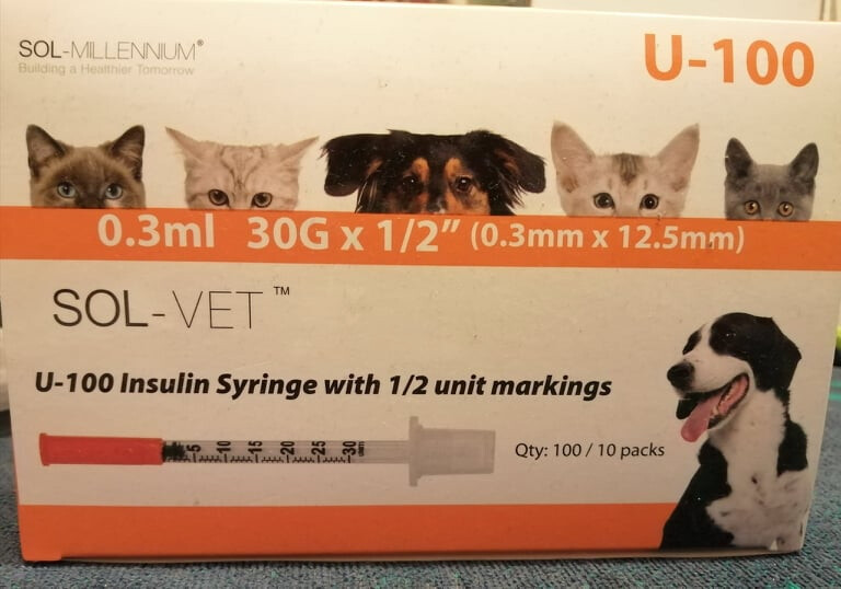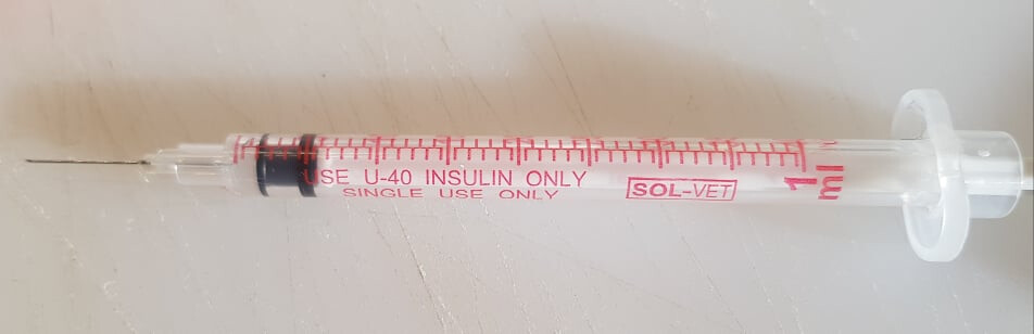 Mieux vaut passer rapidement à de vraies seringues à insuline pour éviter toute incompréhension de dosage avec les membres DF ou d’autres vétérinaires.
