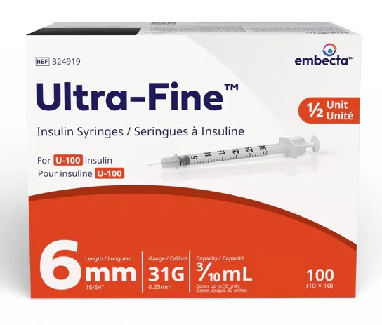 Québec : Ultra-Fine U-100 / 0,3ml / 31G / 6mm (avec demi-unités)