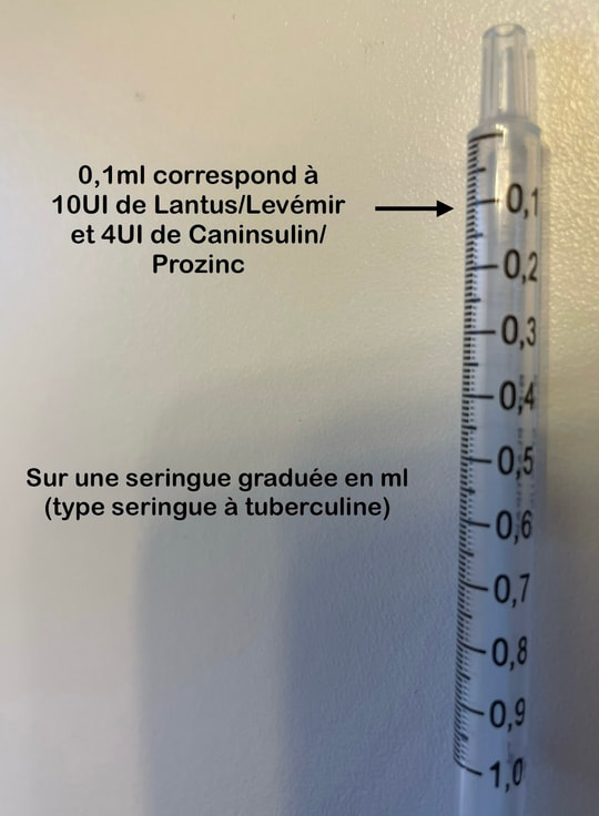 ce ne sont pas des seringues à insuline, mais elles sont parfois prescrites par certains vétérinaires. Graduées en ml et pas en unités.