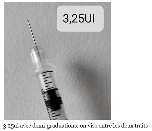 En cas de doute avec les graduations, postez une photo de votre seringue prête à l’injection en indiquant combien d’unités vous avez cherché à mesurer : On s'entraide