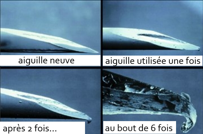Chaque injection émousse la pointe de l’aiguille → injections de plus en plus inconfortables